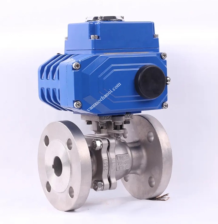 Việc điều khiển đóng-mở của van được thực hiện thông qua bộ điều khiển điện, thay thế hoàn toàn các thao tác thủ công như ở van bi tay gạt hay van bi tay quay.